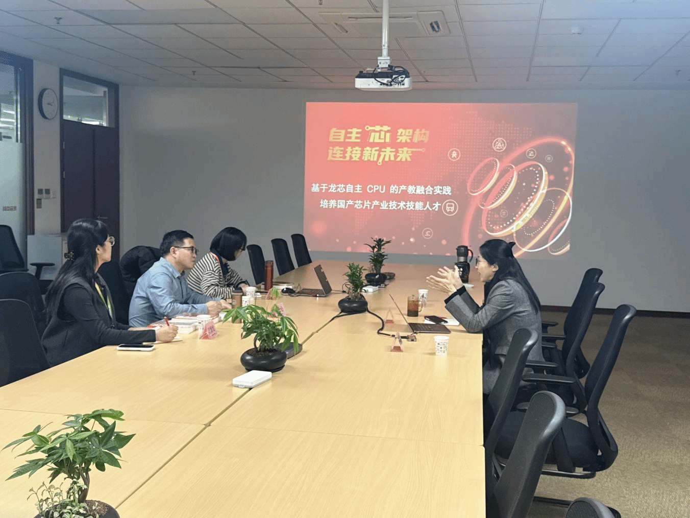 在学科建设、人才培养、科研平台等方面的现状与规划,并表示期待通过校企合作,共同培育符合国产芯片行业需求的高素质人才。双方围绕产教融合、科技成果转化等合作领域进行了务实交流,并达成初步共识。